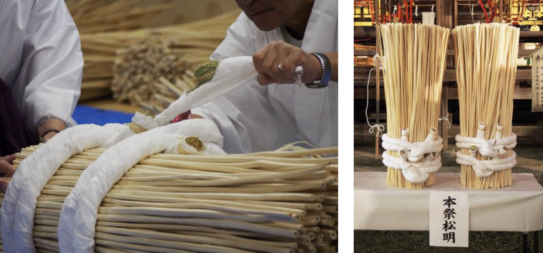 「生駒の火祭り」で使う松明(たいまつ)は、祭の1週間前に作られる