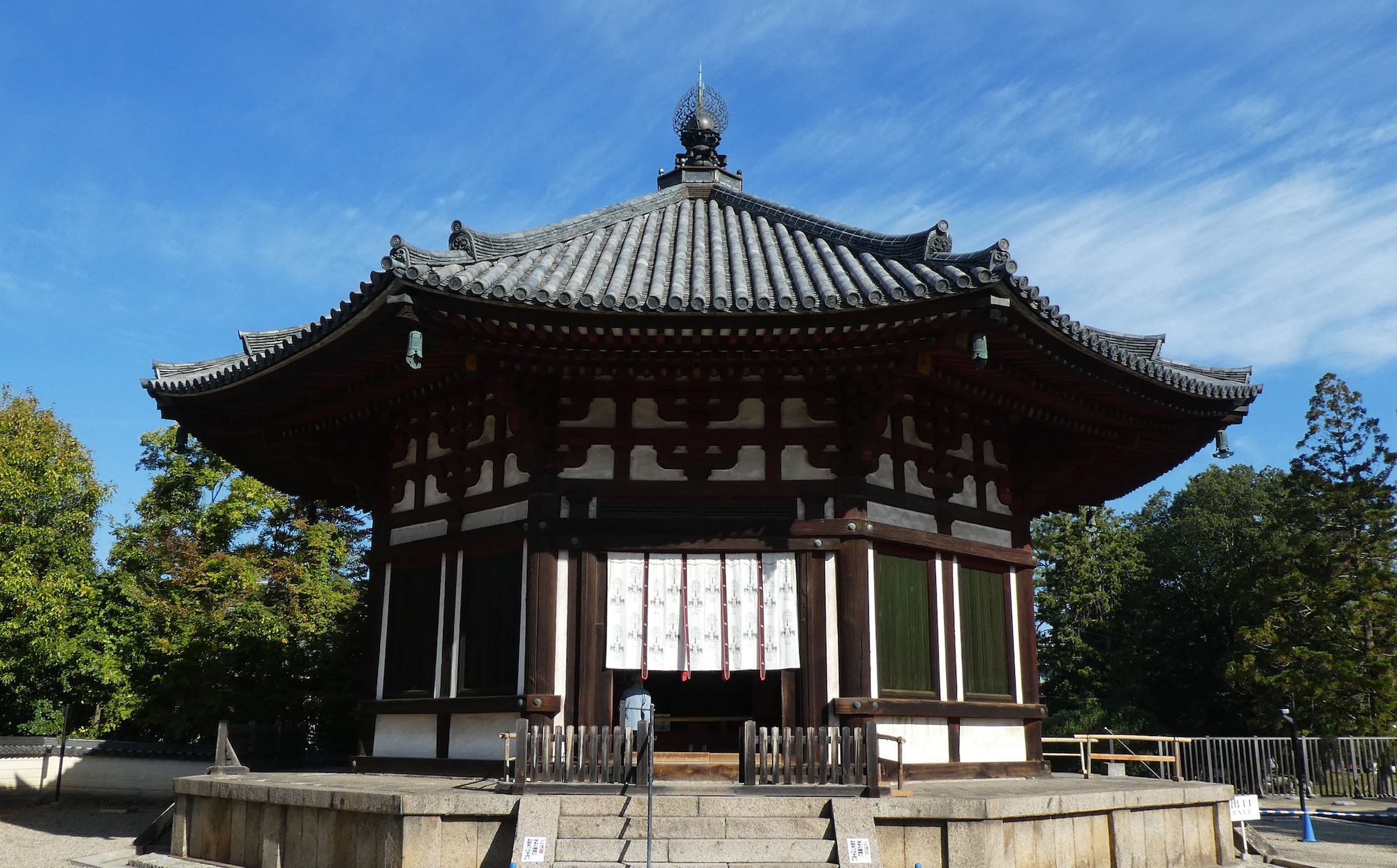 藤原不比等により創建、7回の焼失と6回の再建を繰り返し、江戸末期に「仮堂」再建。平城遷都1300年を迎えた古都奈良の象徴として、多川俊映寺務老院(当時は貫首)の指揮の元、2018年に300年ぶりに再建、5日間にわたる盛大な落慶法要が営まれた。